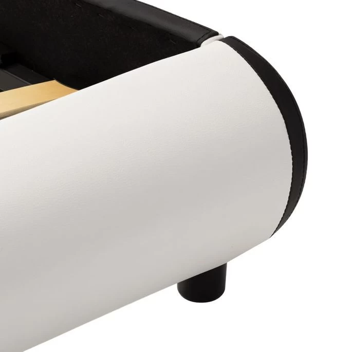 Matériau : tapisserie en similicuir + cadre en fer enduit de poudre + lattes en bois