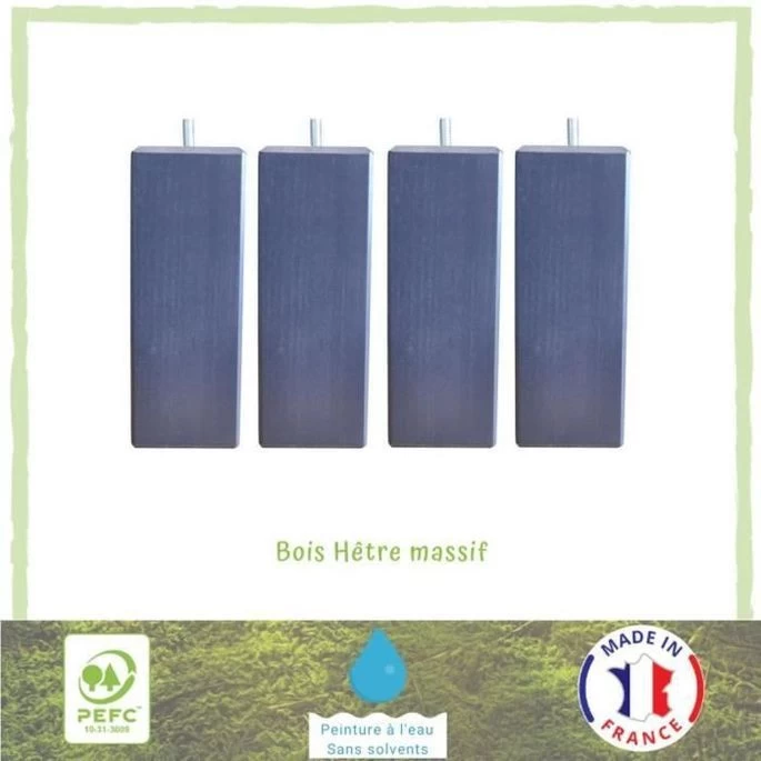 Jeu De Pieds Carrés L 6 Cm X L 6 Cm H 17 Cm – Gris Anthracite – Lot De 4