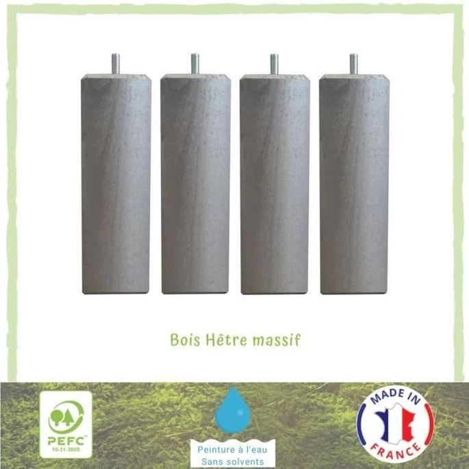 Jeu De Pieds Carrés L 6 Cm X L 6 Cm H 19 Cm – Gris Métal – Lot De 4