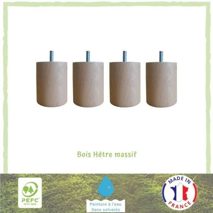 Jeu De Pieds Cylindriques En Bois Ø 7 Cm – H 8,5 Cm – Lot De 4