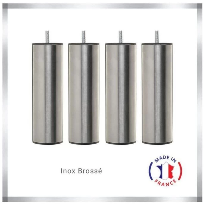 Jeu De Pieds Cylindriques Inox Brossé Saturne Ø 6 H 14,5 Cm – Lot De 4