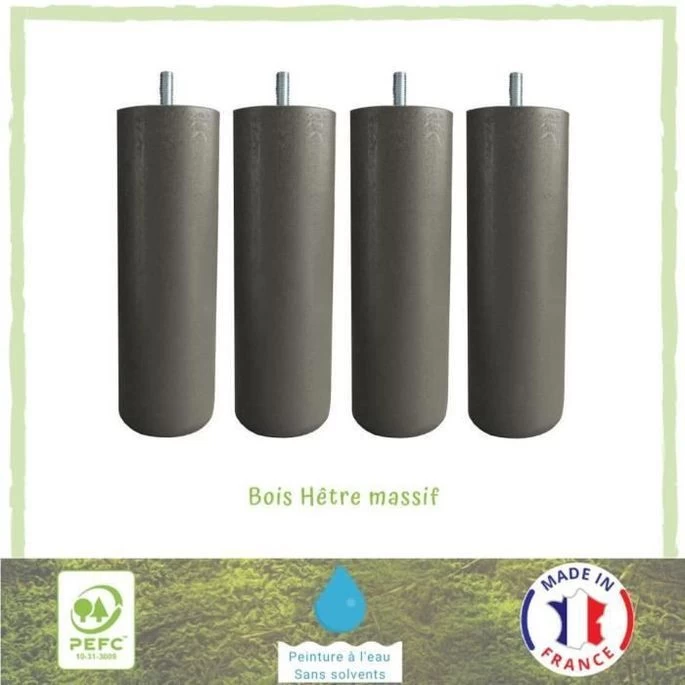 Jeu De Pieds Cylindriques Ø 6,2 H 17 Cm Taupe – Lot De 4