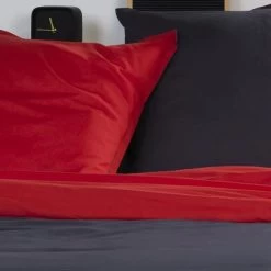 TODAY Parure De Lit Coton 2 Personnes – 200×200 Cm – Bicolore Gris Et Rouge Alix