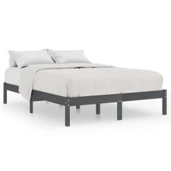 Cadre De Lit Gris Bois De Pin Massif 140×190 Cm Natura