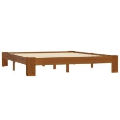 Cadre De Lit Marron Clair Bois De Pin Massif 160 X 200 Cm
