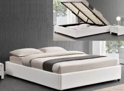 Cadre De Lit Simili Blanc Avec Rangement Studi 180