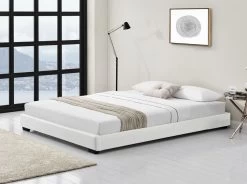 Cadre De Lit Simili Cuir Blanc Avec Sommier à Lattes 160×200 Cm Lony