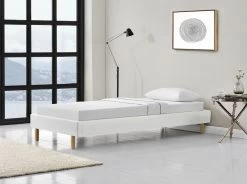 Cadre De Lit Simili Cuir Blanc Avec Sommier à Lattes 90×190 Cm Lina