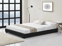Cadre De Lit Simili Cuir Noir Avec Sommier à Lattes 160×200 Cm Lony