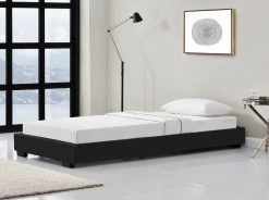 Cadre De Lit Simili Cuir Noir Avec Sommier à Lattes 90×190 Cm Lony