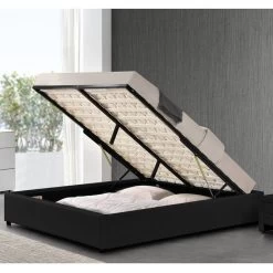 Cadre De Lit Similicuir Noir Avec Rangement Studi 180