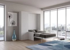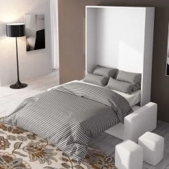 Lit Escamotable 140×190 Cm Avec 1 Colonne De Rangement Bois Blanc Kanto