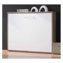 Lit Escamotable 120×190 Cm Avec 1 Colonne De Rangement Bois Blanc Kanto