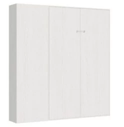 Armoire Lit 120×190 Cm Escamotable Avec Colonne De Rangement Et éléments Hauts Avec Mobilier Bois Frêne Blanc Kanto
