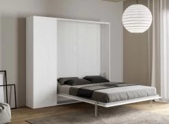 Lit Escamotable 160×190 Cm Avec 1 Colonne De Rangement 2 Meubles Hauts Bois Blanc Kanto