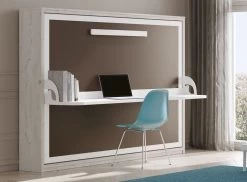 Le bureau d’une longueur de 201 cm et d’une profondeur de 48 cm suit le mouvement d’ouverture du lit, vous n’avez donc pas à le vider lors de l’ouverture de votre couchage.
