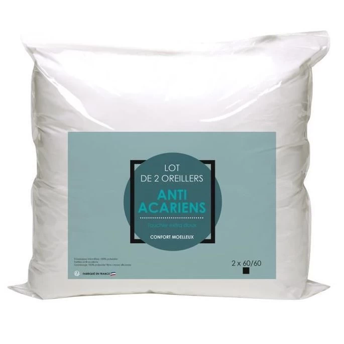 Lot De 2 Oreillers Microfibre Anti-Acariens 60x60cm