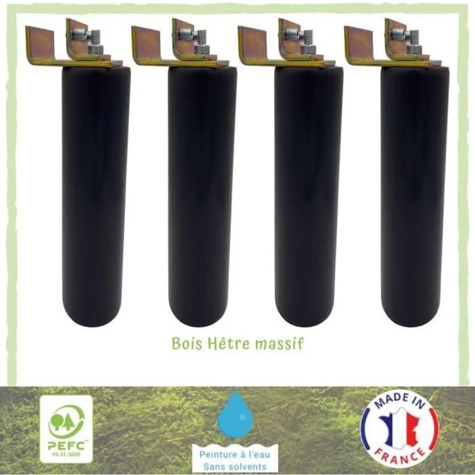 Lot De 4 Pieds De Lit Cylindriques Couleur Gris-anthracite – Kit Universel Pour Sommier Métallique – Ø 5,4 Cm – H 23 Cm