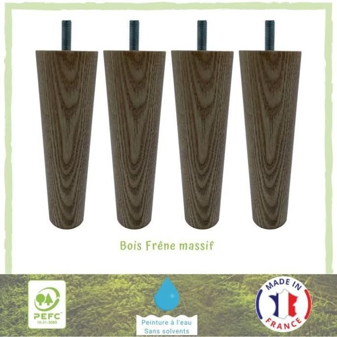 Lot De 4 Pieds De Lit Fuseau Frene Naturel Veiné – Ø 5 Cm – H 14,5 Cm