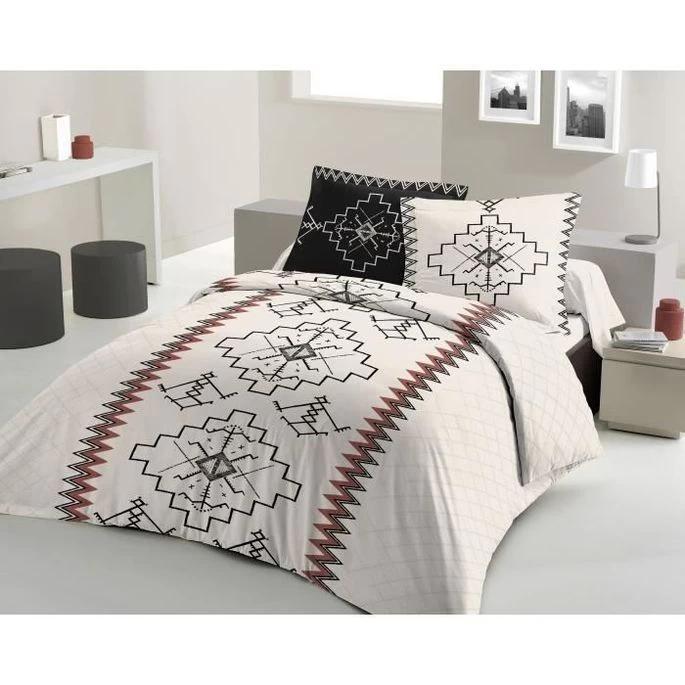 LOVELY HOME Parure De Couette 200×200 Cm + 2 Taies D’oreiller 65×65 Cm – 100% Coton KILIM – Noir