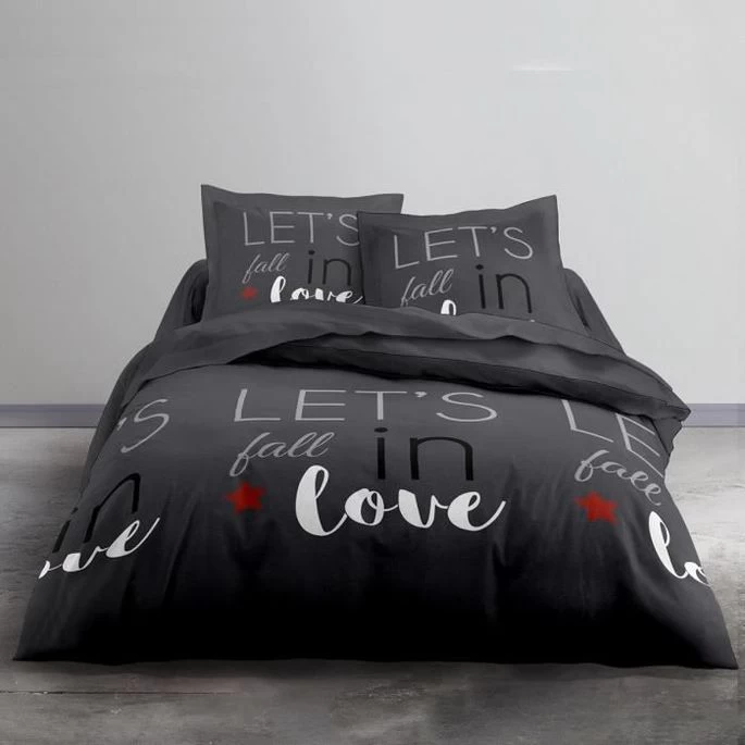 TODAY Parure De Lit Coton Love – 2 Personnes – 240 X 260 Cm – Imprimé Gris