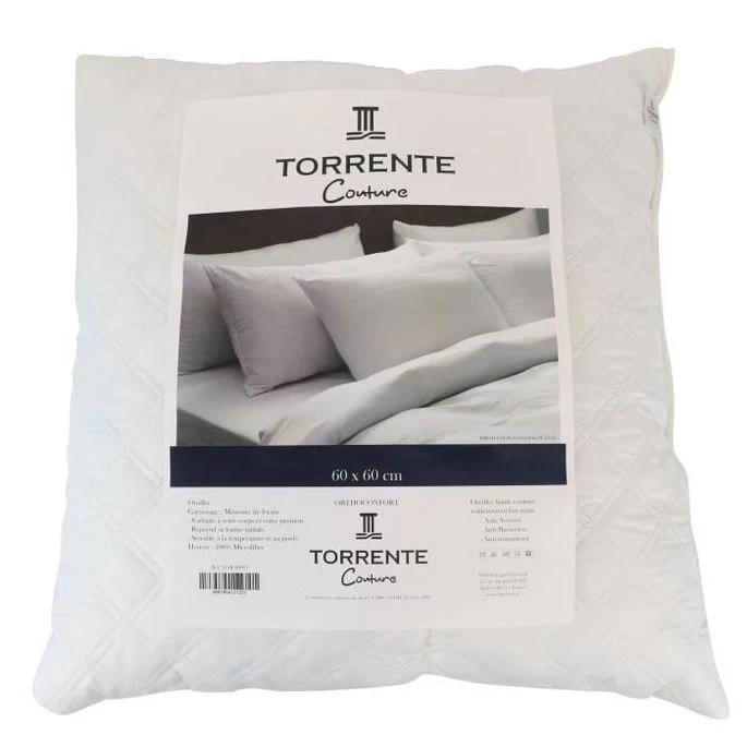 TORRENTE Oreiller A Mémoire De Forme 60×60 Cm – 100% Flocon De Mousse
